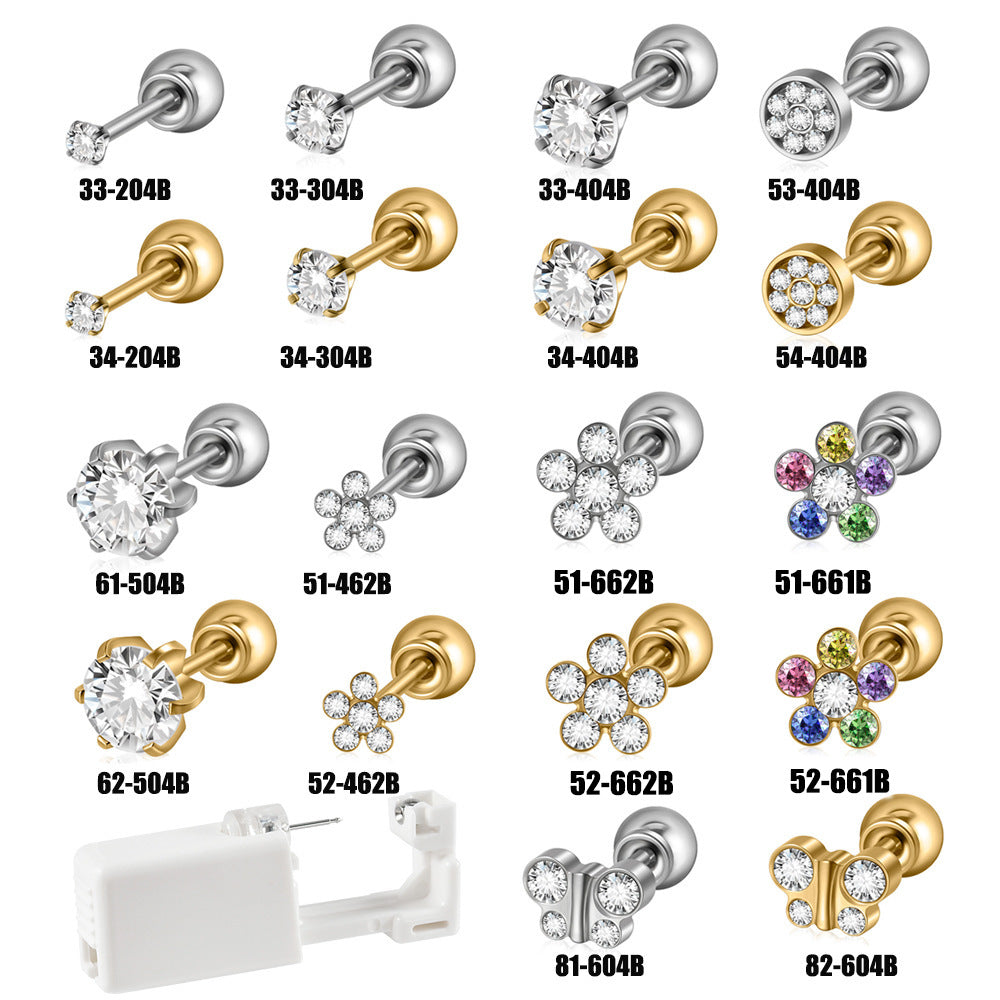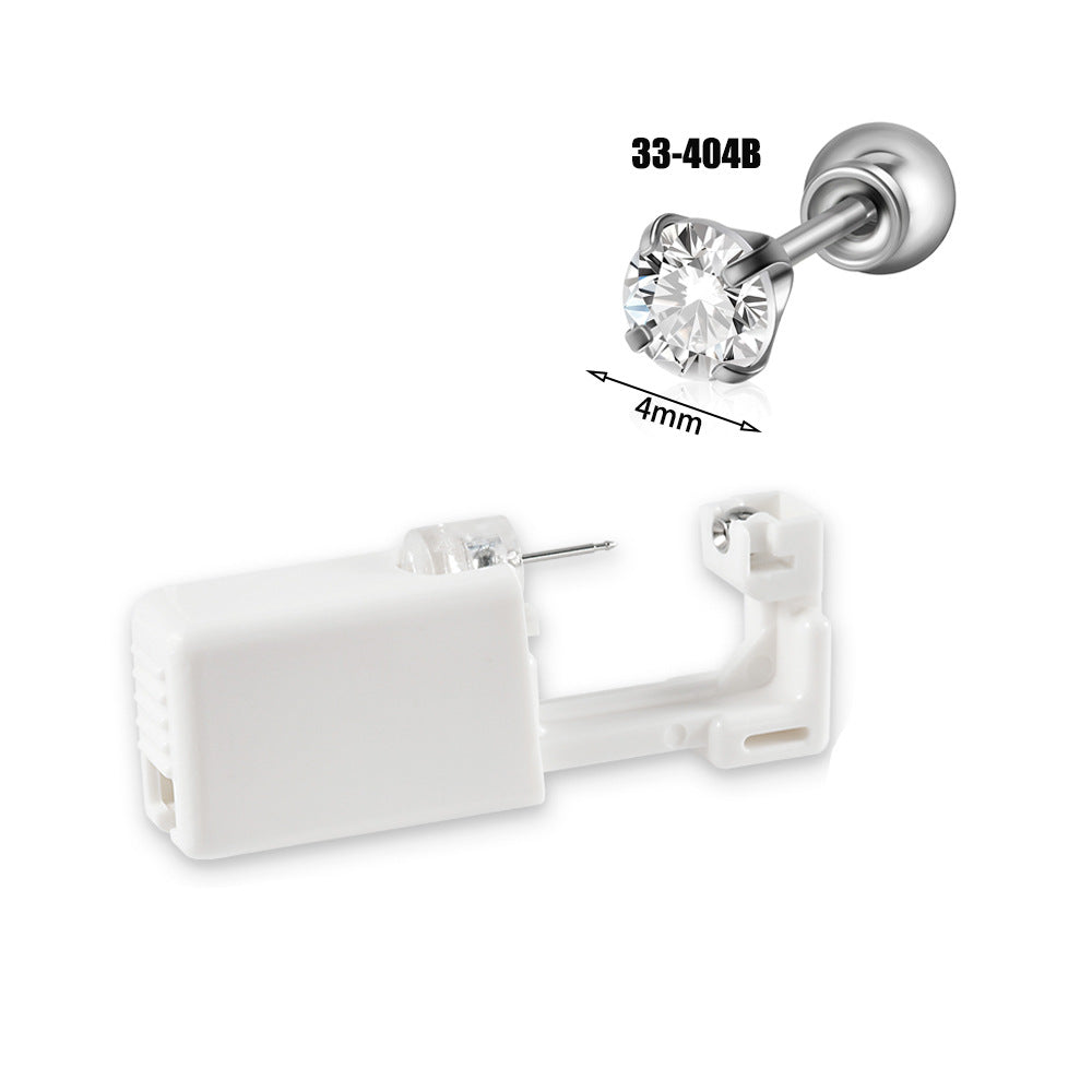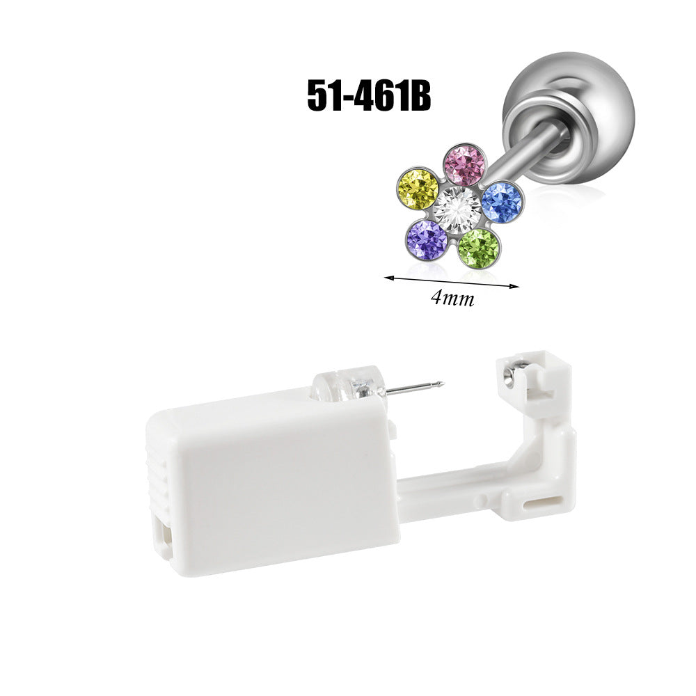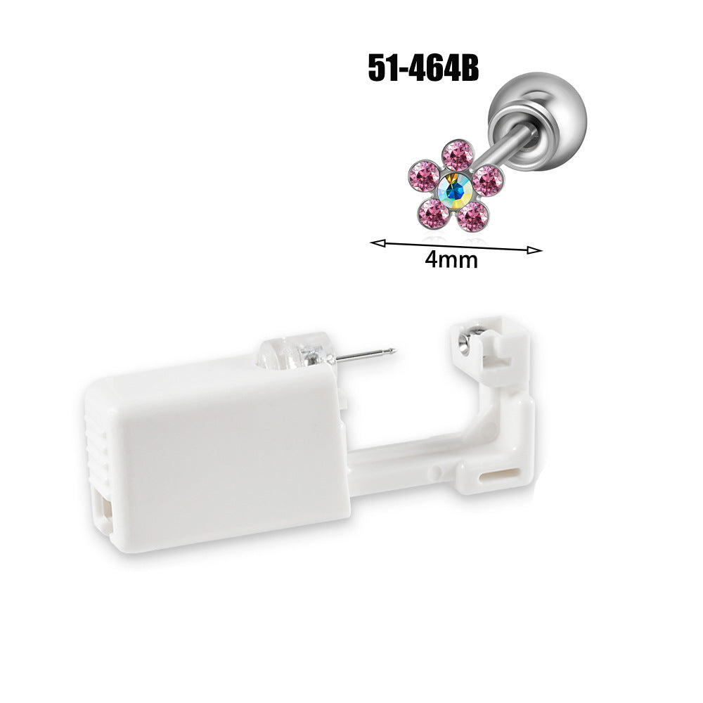 跨境不锈钢一次性耳洞打耳器耳钉花朵蝴蝶锆石头部球座一次打耳枪