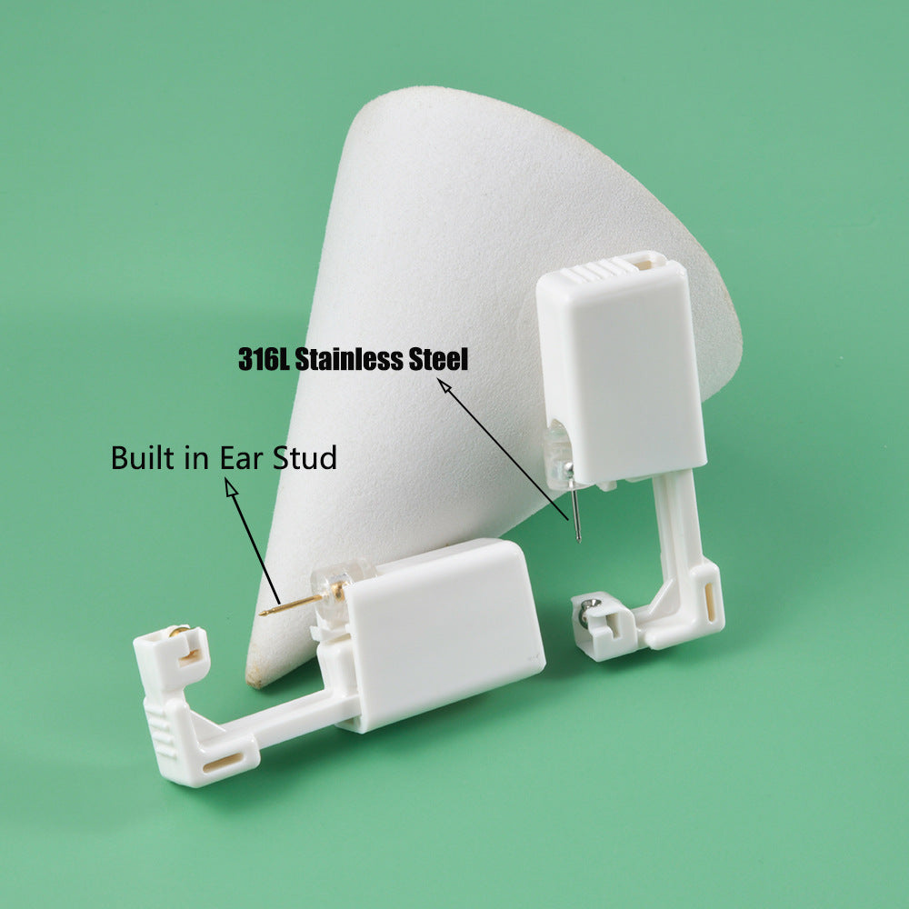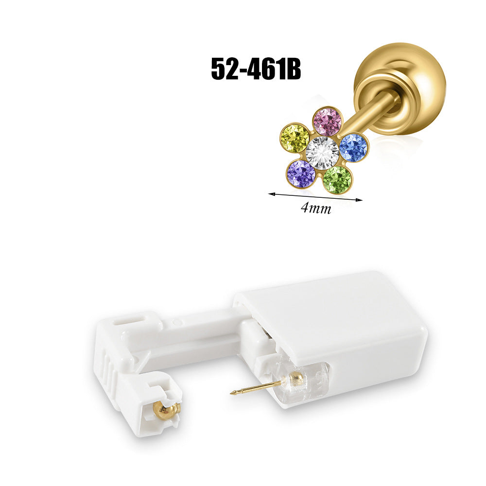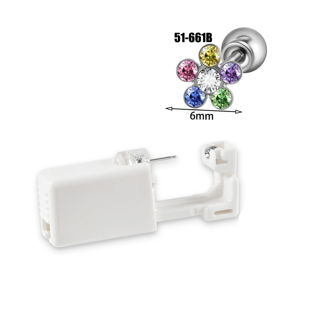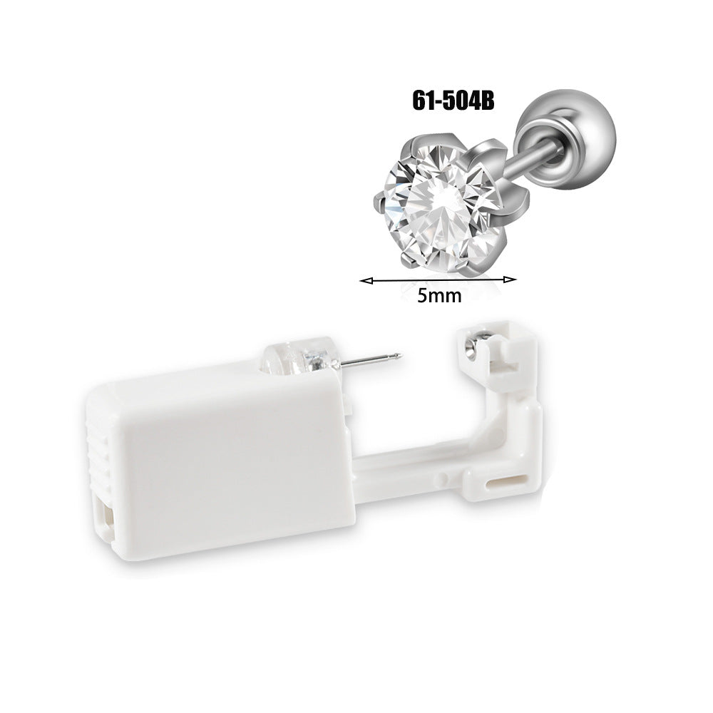 跨境不锈钢一次性耳洞打耳器耳钉花朵蝴蝶锆石头部球座一次打耳枪